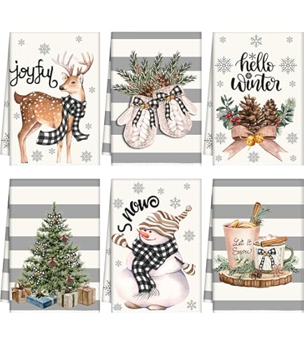Amazon Sratte 6 Pcs Christmas Kitchen Towels Vintage Winter Dish Towels Absorbent Snowman Santa Claus Bathroom Hand Towels Decorative Xmas Tea Towel Christmas Decoration for Kitchen Bathroom Home ... Very well made.