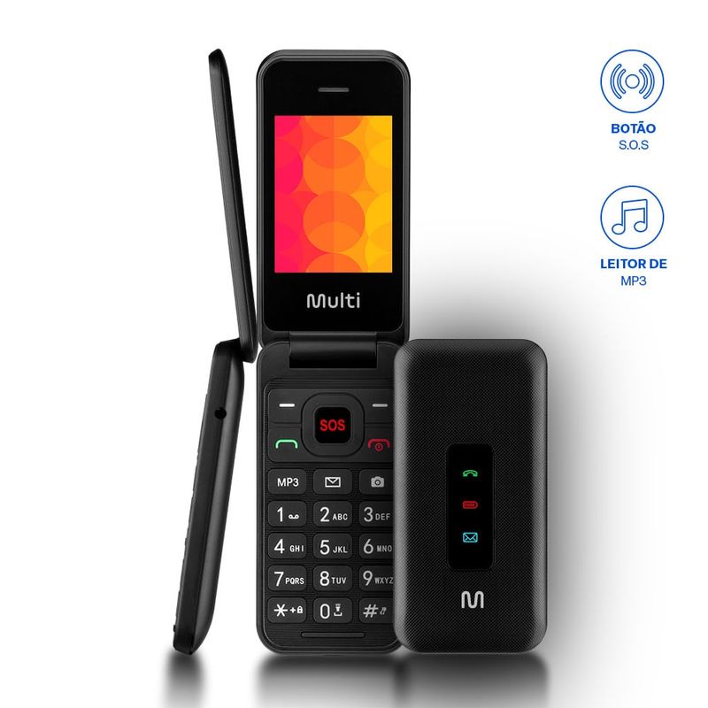 Celular Multilaser Flip Vita 3G Dual Chip com Botao SOS Radio FM MP3 Bluetooth Camera Preto P9140OUT Reembalado P9140OUT Ri Happy Very well made.