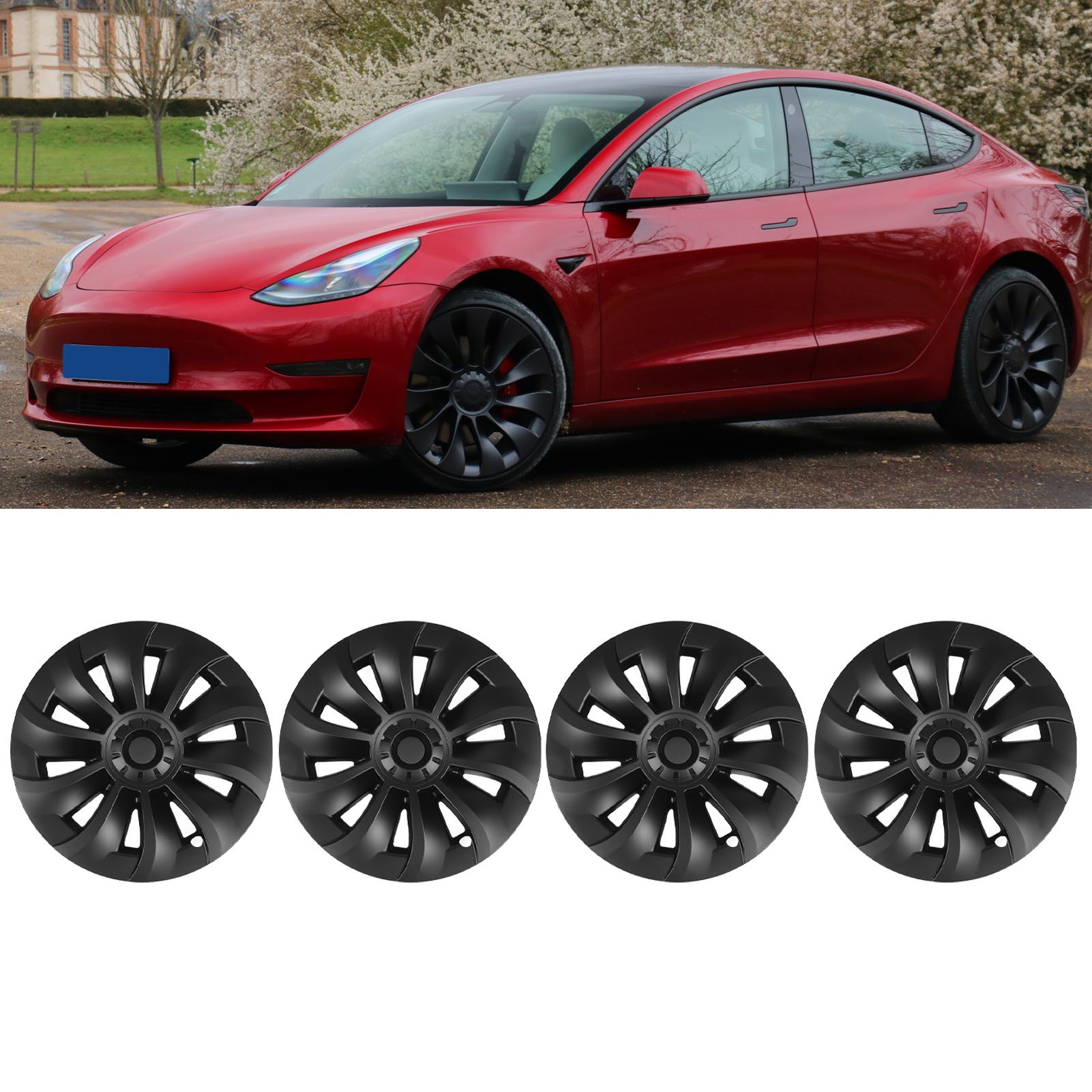 Hubcaps Wheel Center 4PCS 19in Wheel Hub Cool Sporty Weatherproof Wheel Rim Cover Replacement For Model 3 2020 To 2023 Matte Black Very well made.