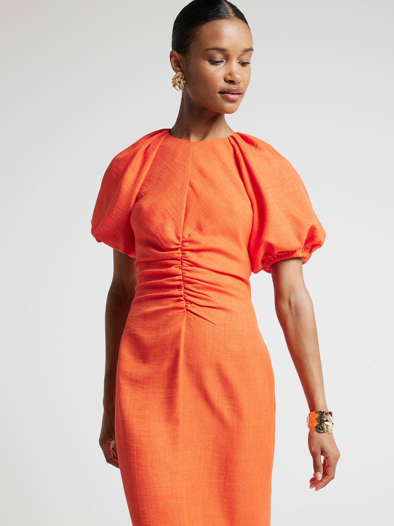 River Island Puff Detail Ruched Midi Dress Coral Very Ireland Very well made.