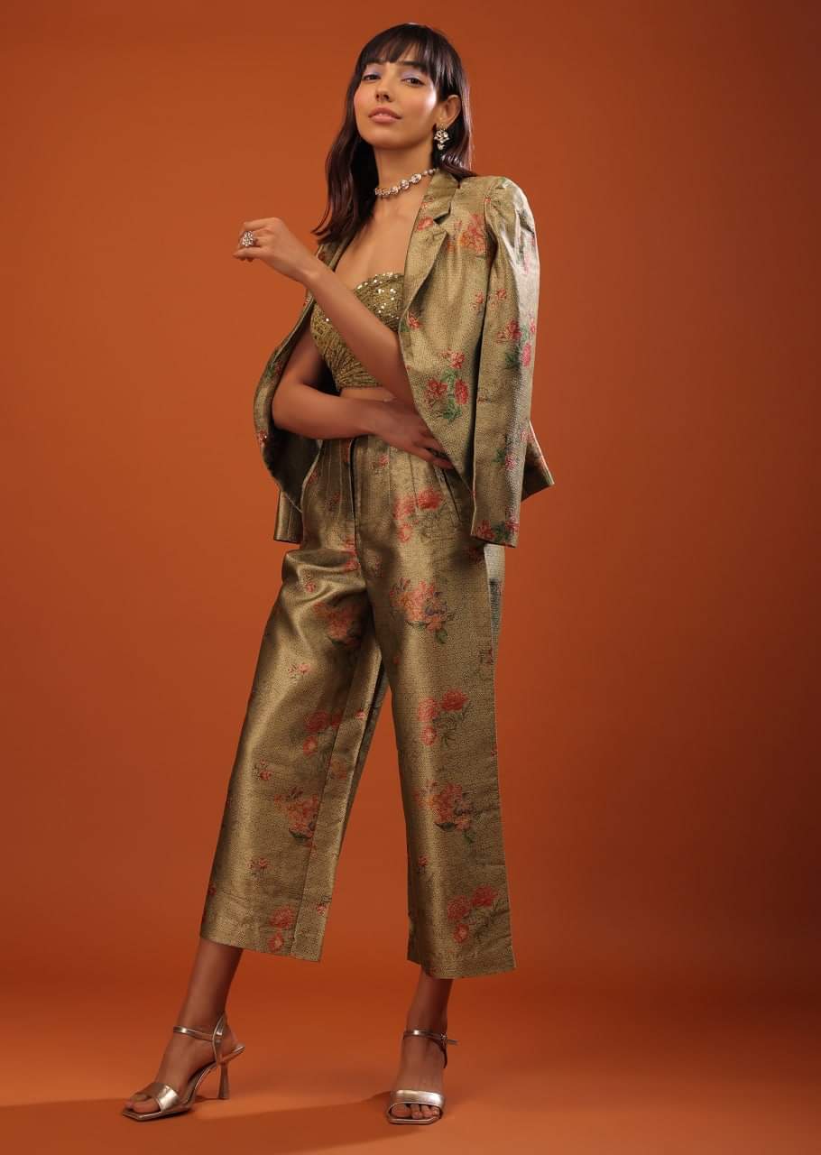 Buy Moss Green Three Piece Suit for Women With Cropped Pants Very well made.