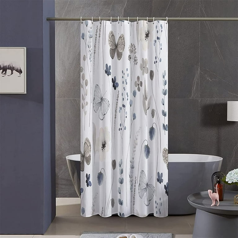 Stall Floral Shower Curtain Sets 36Wx72H Inch Narrow RV Grey and Ink Blue Flowers Fabric Shower Curtains Soft Waterproof Polyester Bathroom Curtains with Hooks Walmart Very well made.