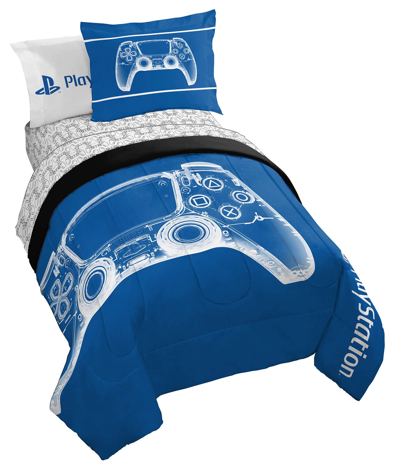 Playstation Brandclub PlayStation X Ray Gamer 7 Piece Full Size Bed Set Includes Comforter Sheet Set Super Soft Kids Bedding Fade Resistant Microfiber Official Product Very well made.