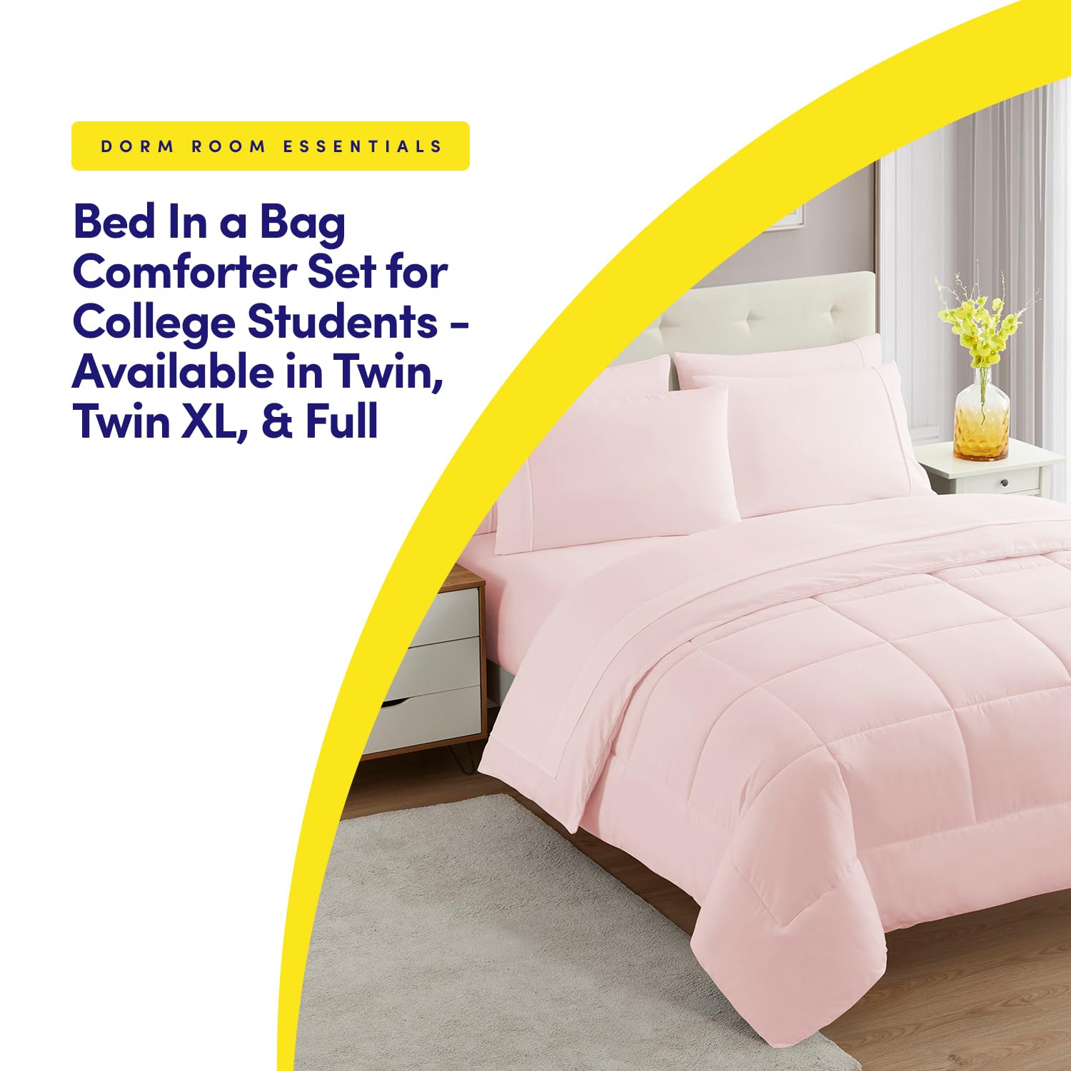 Amazon Dorm Room Essentials College Bedding Comforter Set 5 Piece Twin XL Size Bed in a Bag for College Students Boys and Girls Twin XL Pale Pink Home Kitchen Very well made.