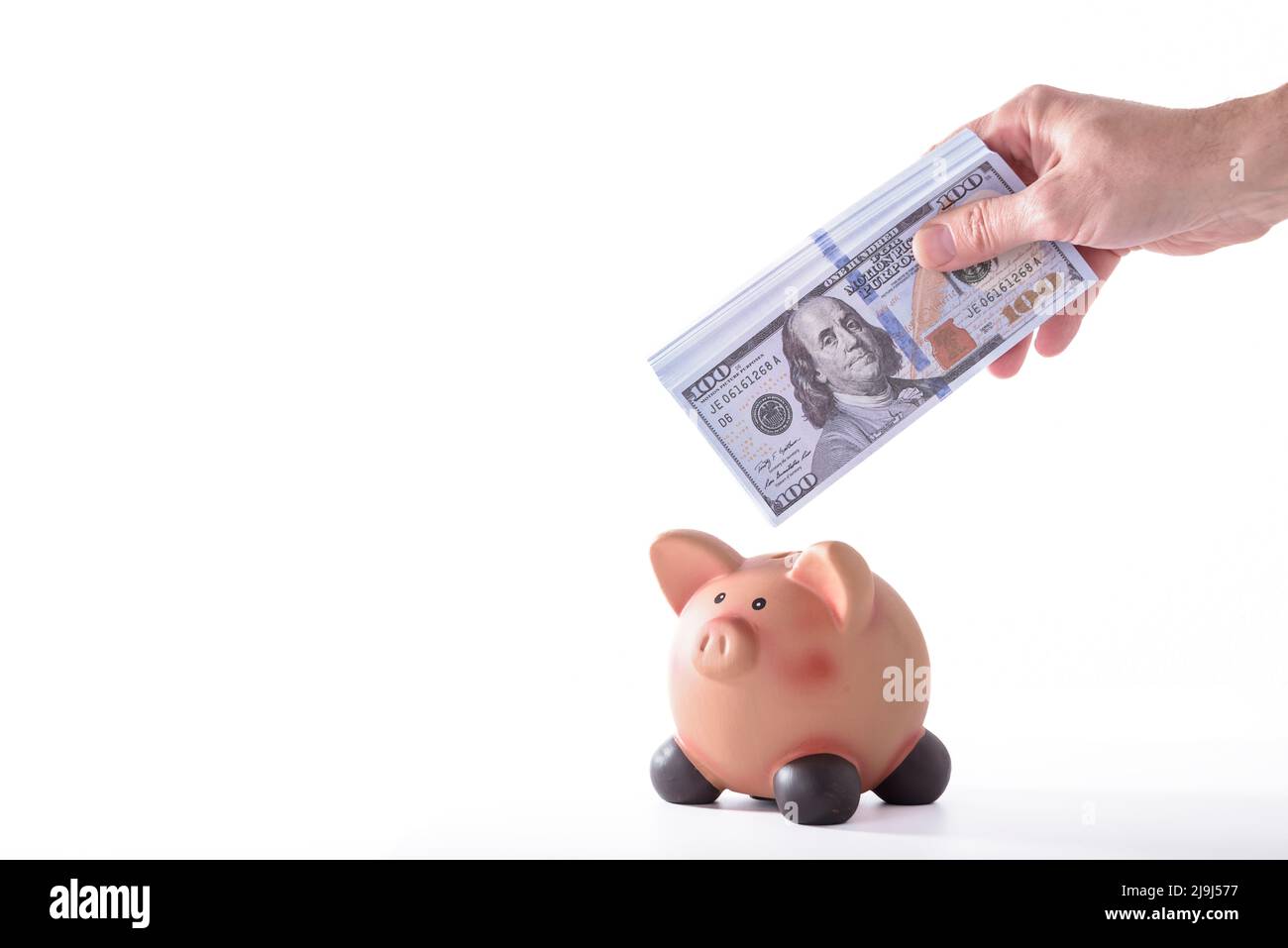 pink piggy bank on carpet of American dollar bills of various denominations and with 100 dollar bill beside Stock Photo Alamy Very well made.