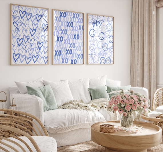Blue Preppy Wall Art Trendy Print Set of 3 Graffiti Hearts XOXO Print Happy Face Print Cute Apartment Decor College Dorm Decor PRINTABLE ART Etsy UK Very well made.