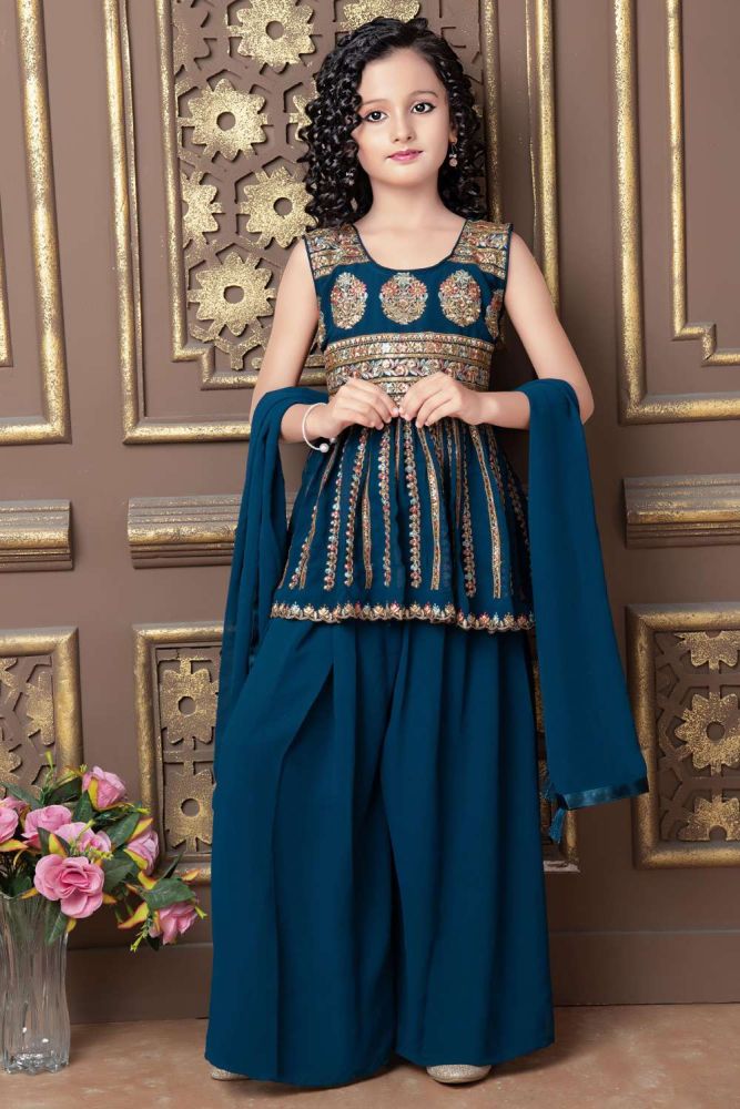 Rama Diwali Girls Dress in Embroidered Faux georgette Very well made.