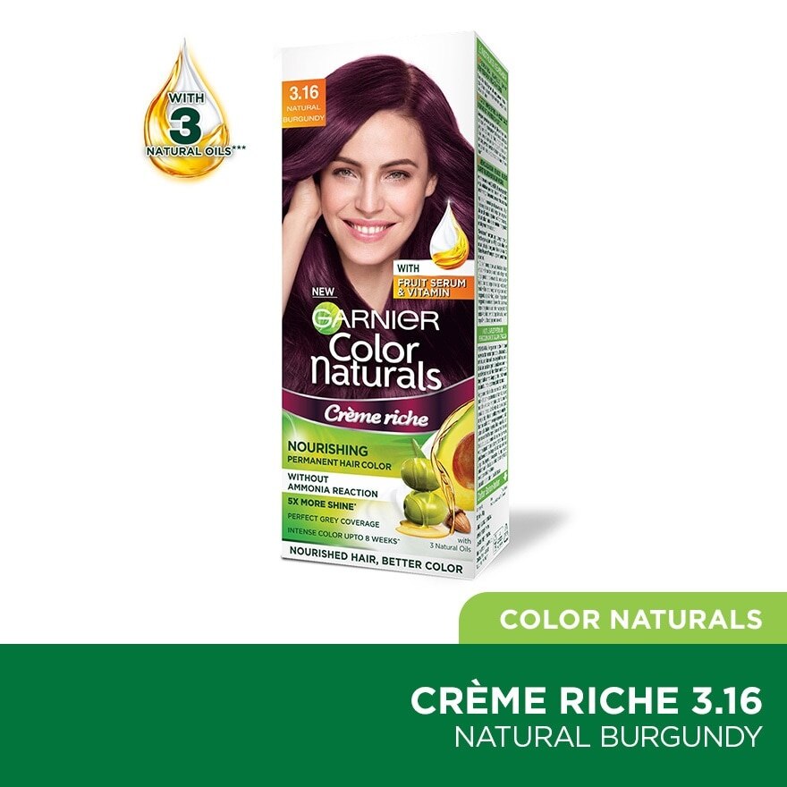 GARNIER Color Naturals Nourishing Permanent Hair Color 3.16 Natural Burgundy With Fruit Serum Vitamin 1s Hair Colour Watsons Singapore Very well made.