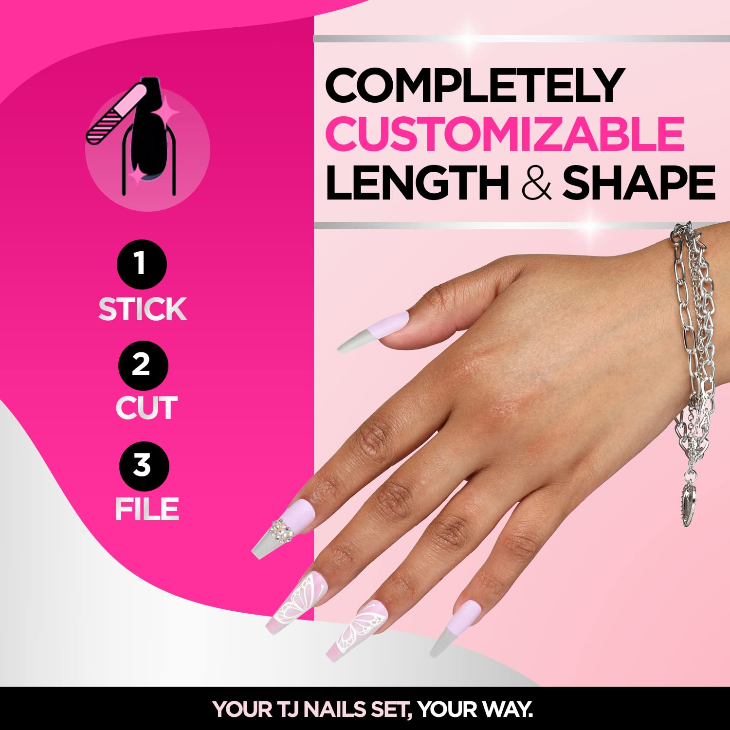 Amazon TJ Nail Collection Press on Nails Long Fake Nails for Women 24 Piece Acrylic Nail Kit with Glue Glue Stickers Nail File Cuticle Stick Purple Butterfly Beauty Very well made.