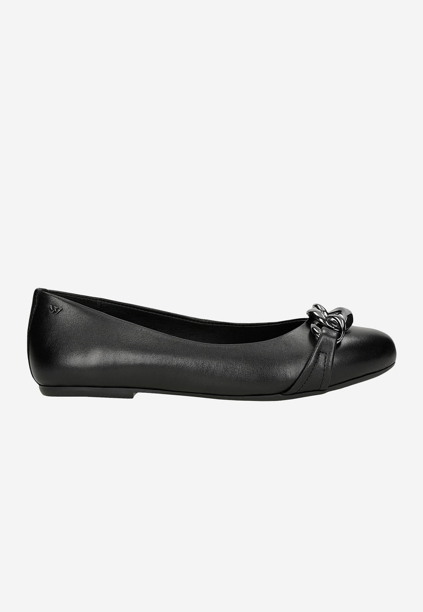 Wojas Black Leather Ballet Flats with Decorative Chain 4402551 Luxahaus Beyond Very well made.