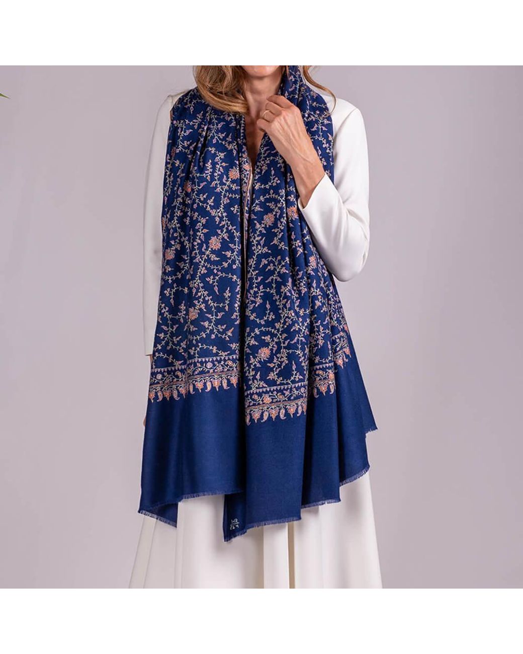 Black Hand Embroidered Pashmina Cashmere Shawl Navy Floral in Blue Lyst UK Very well made.