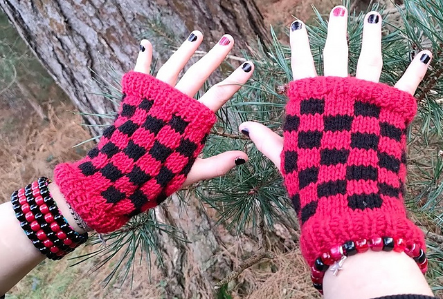 Ravelry Checkerboard Fingerless Gloves pattern by Y. Sands Very well made.