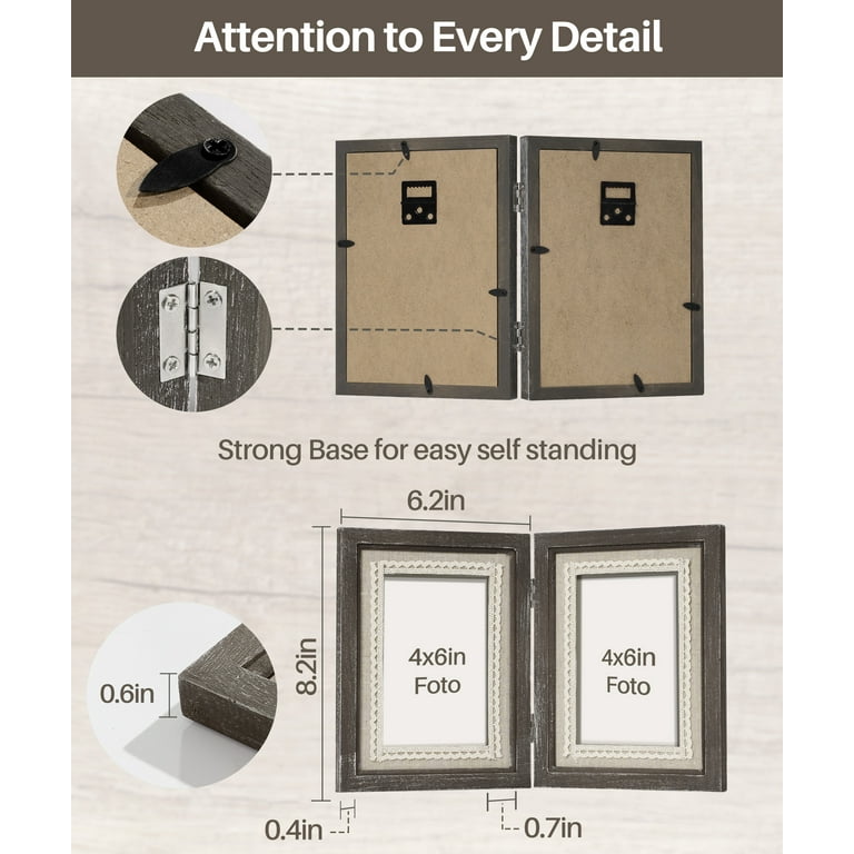 Amazon Frametory 5x7 Double Picture Frame Hinged 2 Photos Frame Collage Desk Picture Frame with Glass Side by Side Frame Vertical Grey 1 Pack Very well made.