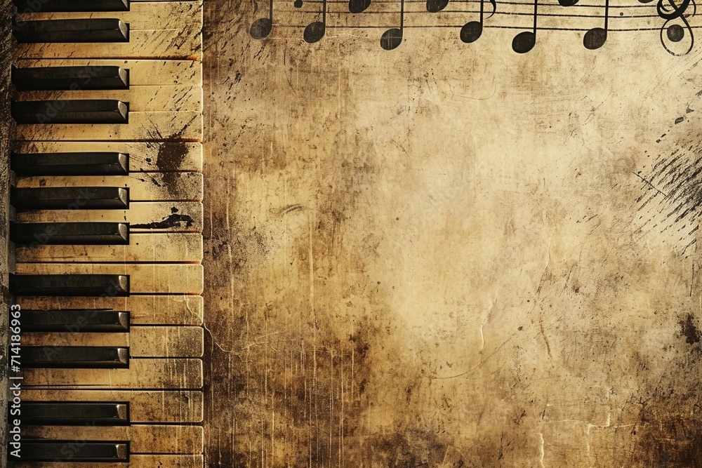 Obraz Gritty Harmony Grunge Music Background Wallpaper with Vintage Old Keyboard and Scattered Music Notes Grafinia.pl Very well made.