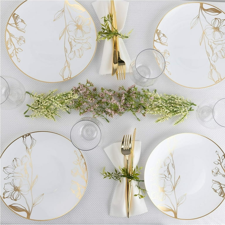 10 Disposable Fancy White Plastic Dinner Plates Gold Curve Collection Ecoquality inc Very well made.