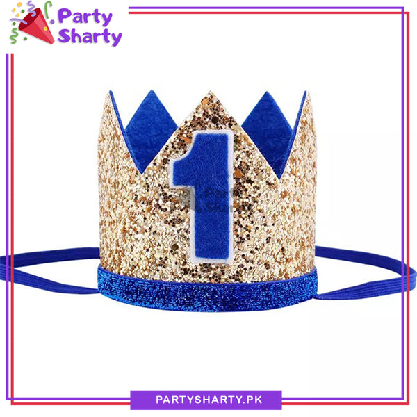 Baby Boy First Birthday Glitter Blue Hat Crown with Stretchable Band and Roses with Number 1 at 120 piece in Jaipur Very well made.