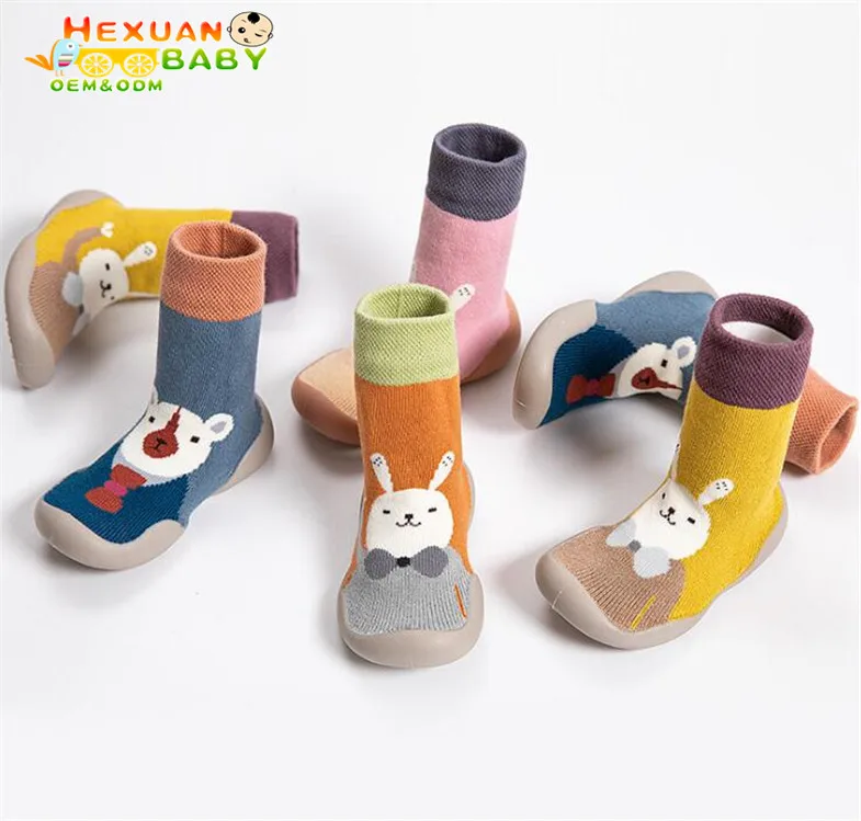 Rubber Baby Sole Socks Baby Socks Rubber Soles Cartoon Bear Rabbit Printed Rubber Baby Sock Shoes Antislip Soft Sole Botton Very well made.