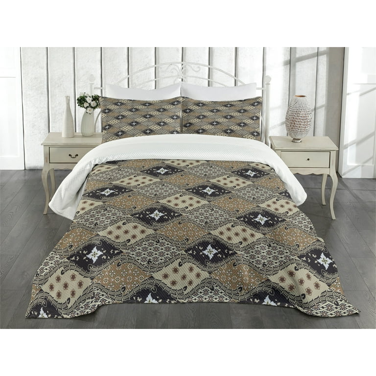 Ambesonne East Quilted Bedspread Set 3 Pcs Old Fashioned Batik Pattern King Size Tan Black Walmart Very well made.