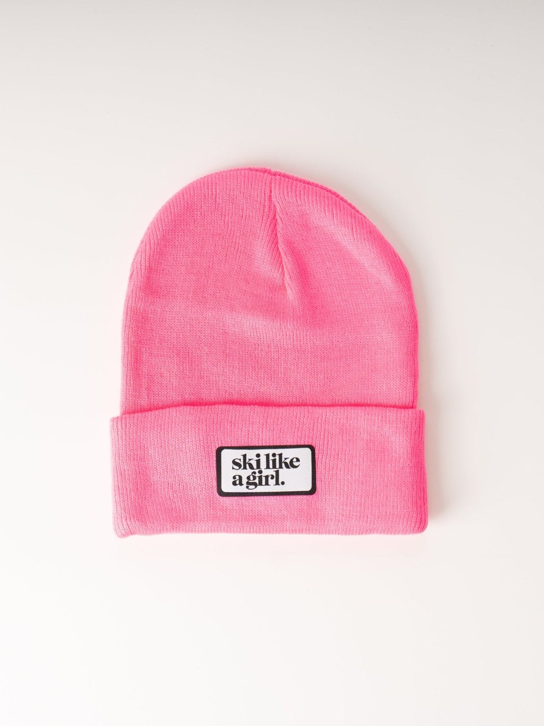 Ski Like a Girl Hot Pink Ribbed Beanie Heyday Bozeman Very well made.