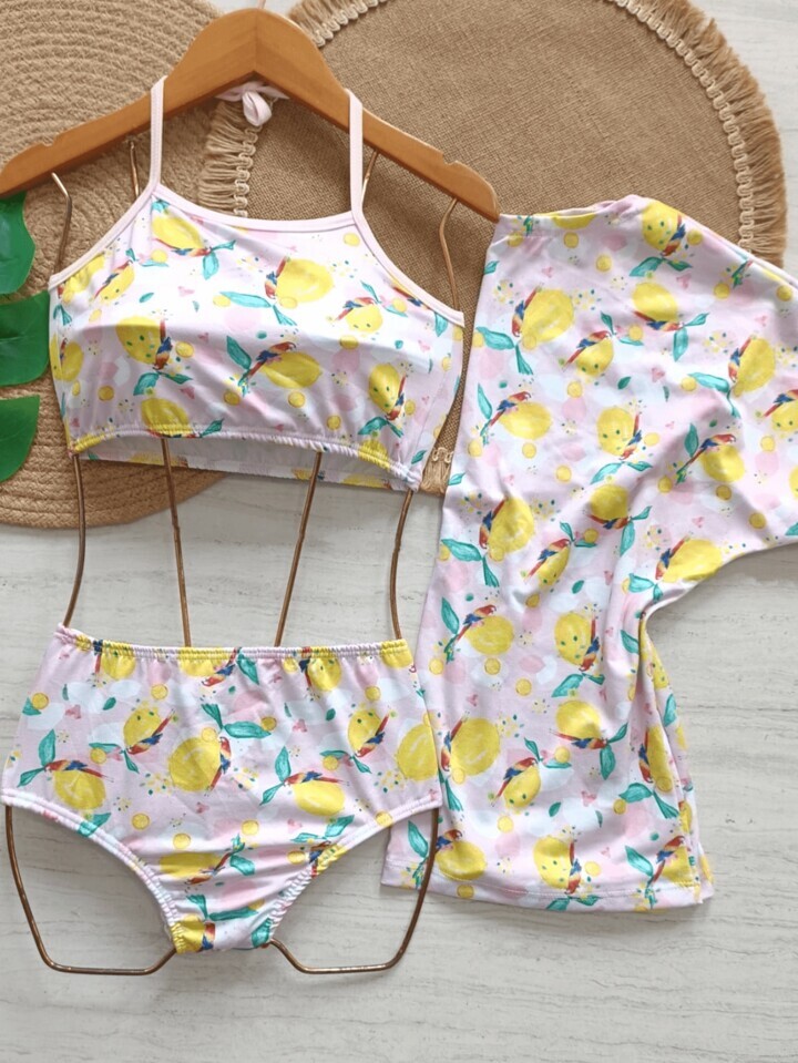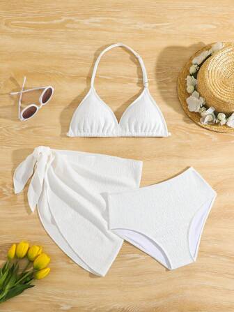 Teen Girls Ruched Frill Trim Bikini Swimsuit With Floral Print Beach Skirt Very well made.