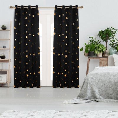 Deconovo Blackout Curtains Bedroom Curtains Gold Star Foil Printed Eyelet Curtains W46 x L90 Inch Black Very well made.