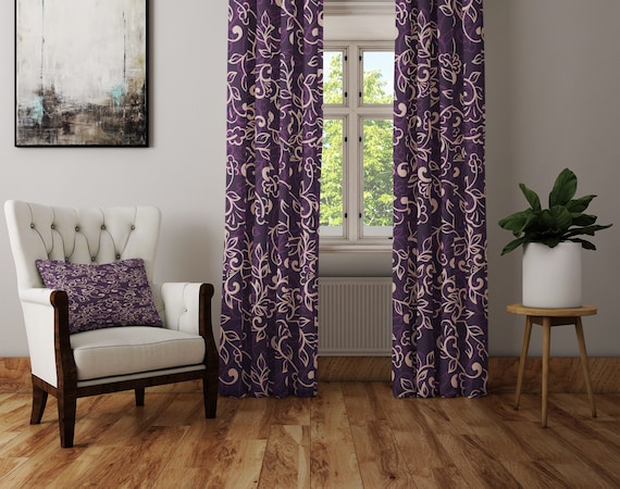 Purple and Beige Window Curtain Panels Long Panel Lined Unlined and Blackout Curtains Burgundy Art Nouveau Etsy Very well made.