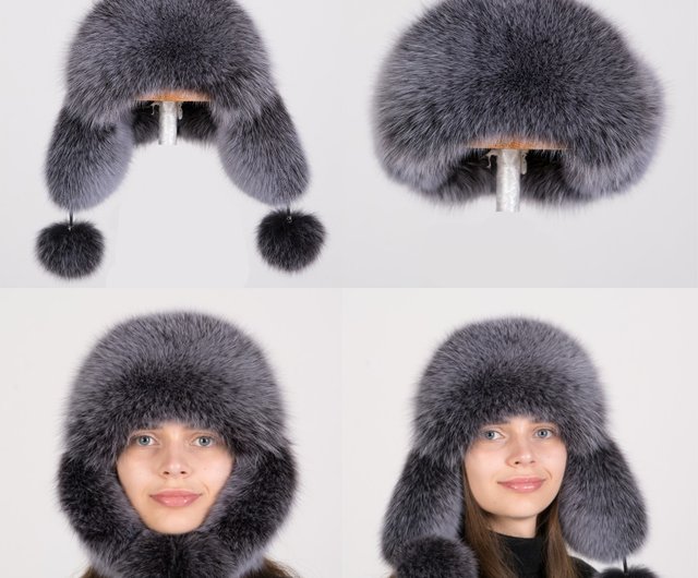 Womens Blue Fox Fur Excursion Trapper Hat with Pom Pom FurHatWorld Very well made.