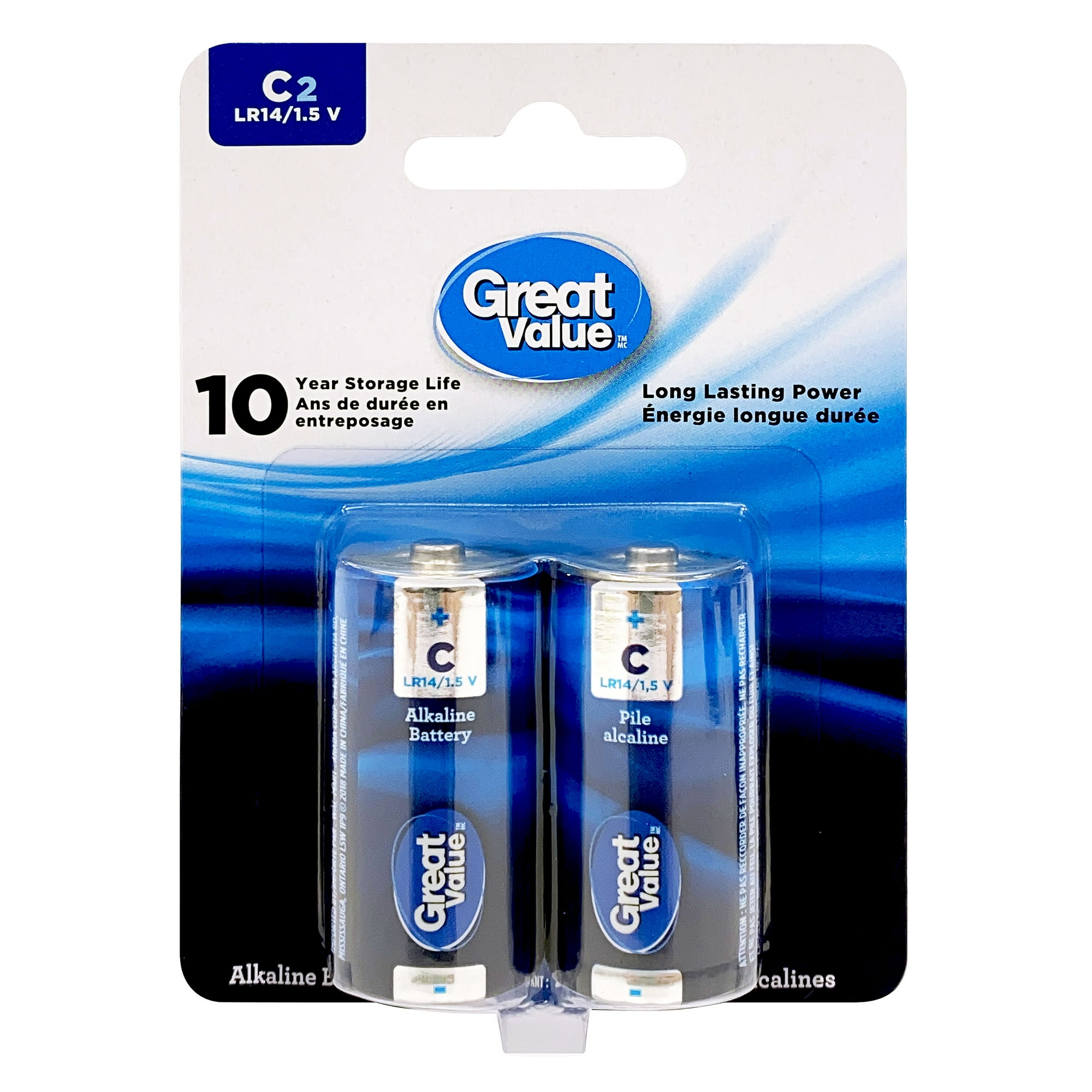 Great Value C LR14 1.5 V Alkaline Batteries 2 Pack 10 year storage life Long lasting power guarantee Walmart Very well made.