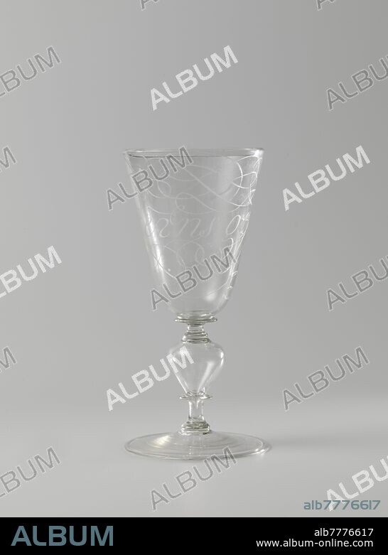 Goblet Goblet with the inscription Syt once sint Low foot with folded edge. Hollow baluster shaped trunk with two flat discs. Funnel shaped chalice rounded on the unde Album alb7776617 Very well made.