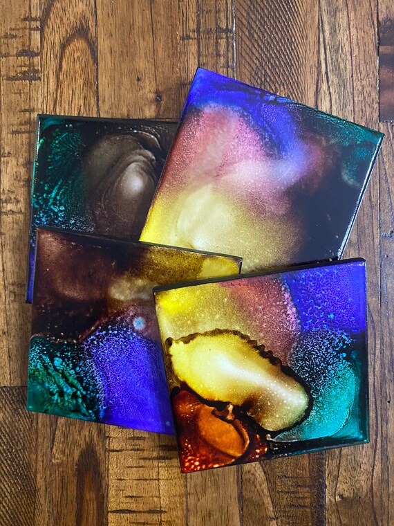 Handmade Ceramic Drink Coasters Made in Various Themes Alcohol Ink Art Work One of the Kind Art Work Etsy Very well made.