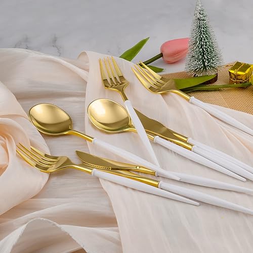 120PCS Gold Plastic Silverware Disposable Flatware with White Handle Gold Plastic Cutlery Includes 40 Spoons 40 Forks 40 Knives for Party Dinner Wedding in Dubai UAE Whizz Spoons Very well made.