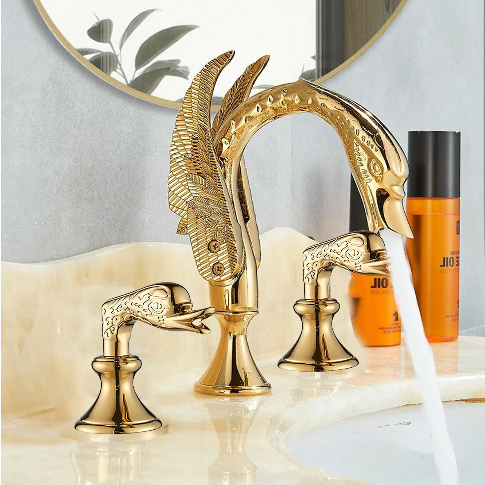 Gold Waterfall Swan Bathroom Sink Faucet 3 Hole 8 Widespread Vanity Mixer Tap Very well made.