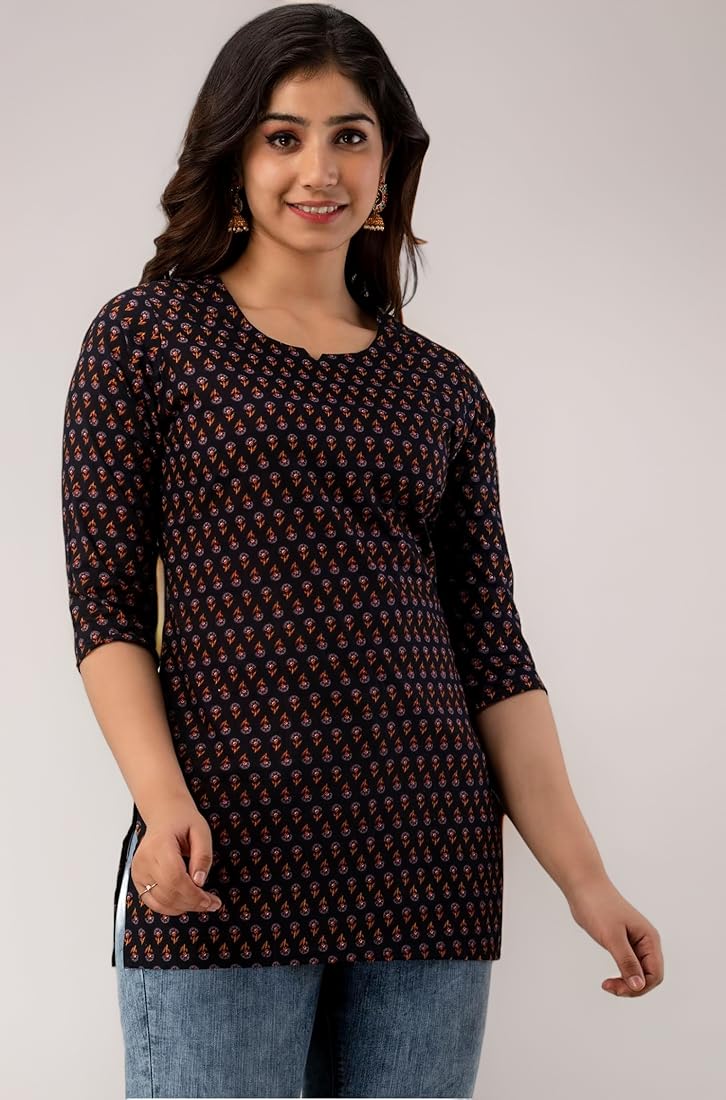 Buy SareeSwarg Cotton Blend Printed Short Kurtis for Women Top Kurti for Girls and Womens at Amazon.in Very well made.