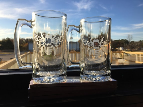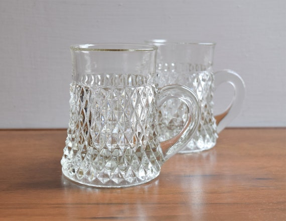 Set of 2 Indiana Glass Mugs in Clear Diamond Point Clear Glass Cups Vintage Heavy Glasses Vintage Press Glass Mug Etsy UK Very well made.