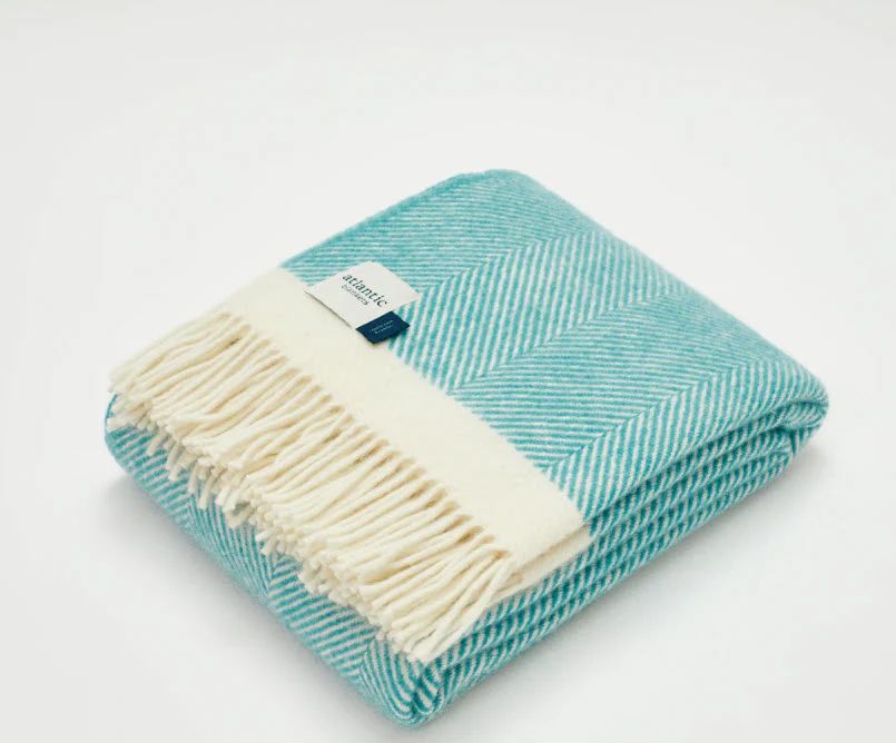 Turquoise Herringbone 100 Wool Blanket Outdoor Robey s Very well made.