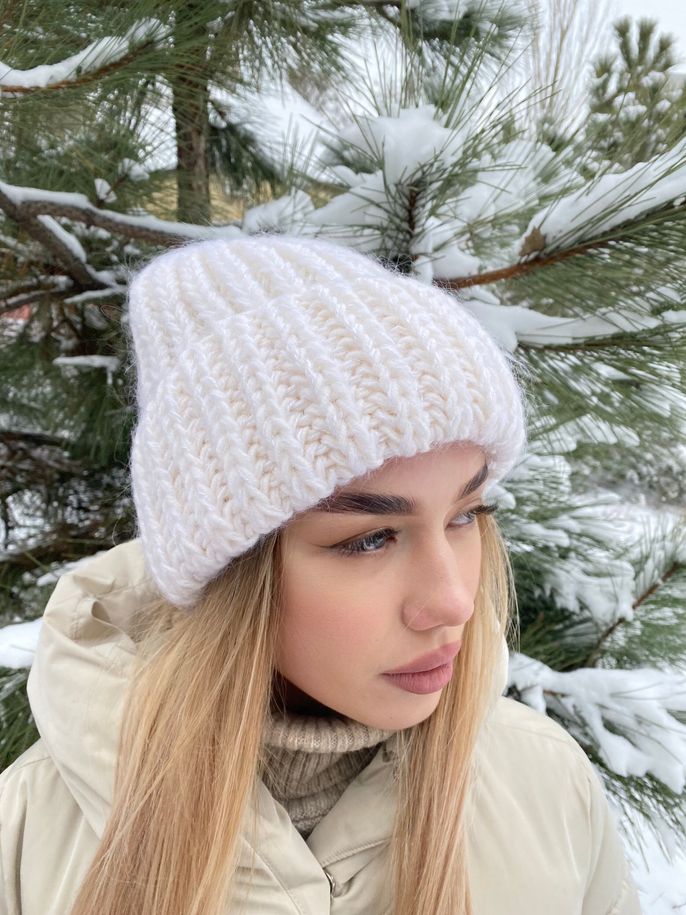White Mohair Wool Chunky Knit Hat Women Hand Knitted Volume Beanie Hat Winter Fluffy White Hat Women s Accessories Lapel Hat Gift for Her Etsy UK Very well made.