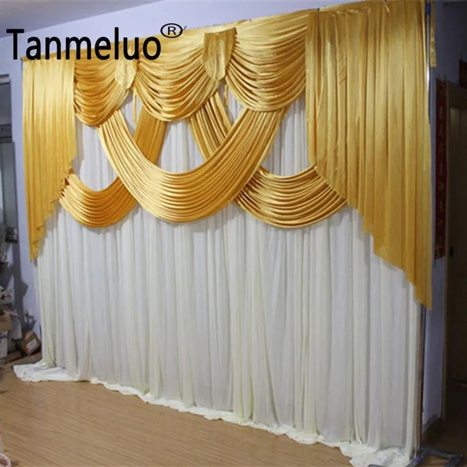 DHgate Gold White 10x10ft Wedding Backdrop Silk Party Curtains Drape for Stage Decoration Home Garden Very well made.