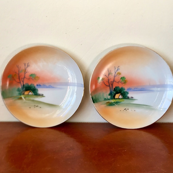 Vintage Japanese Hand Painted Porcelain Nippon Dessert Plates Set of 2 1930s Lake Scene at Sunset Retro Japan PC797 Etsy UK Very well made.