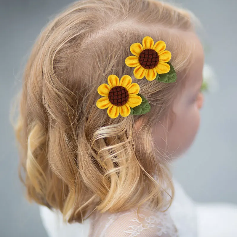 cnhairaccessories 2pcs Cute Girl Sunflower Hair Clips Style A Very well made.