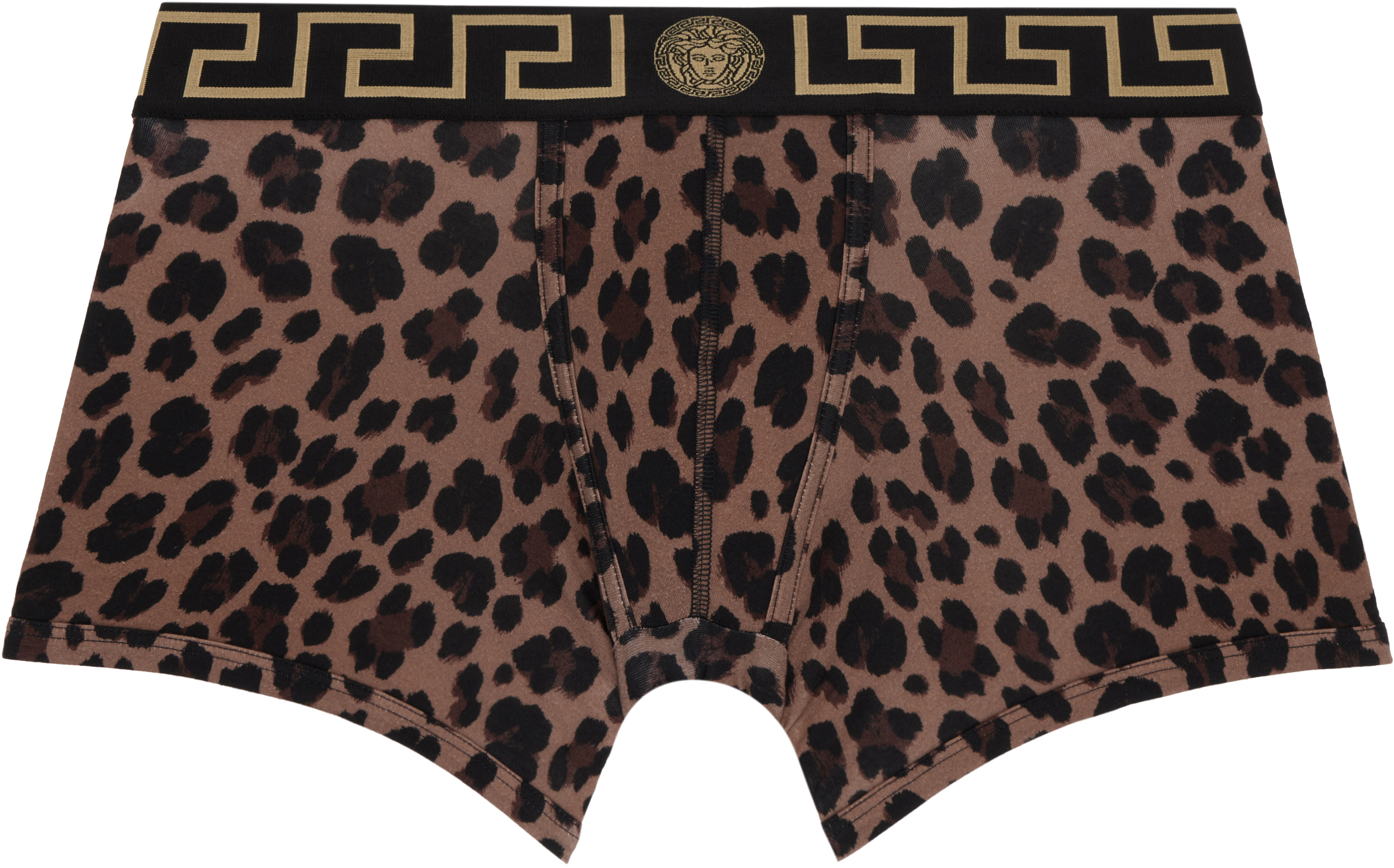 Brown Leopard Greca Border Long Boxer Briefs by Versace Underwear on Sale Very well made.
