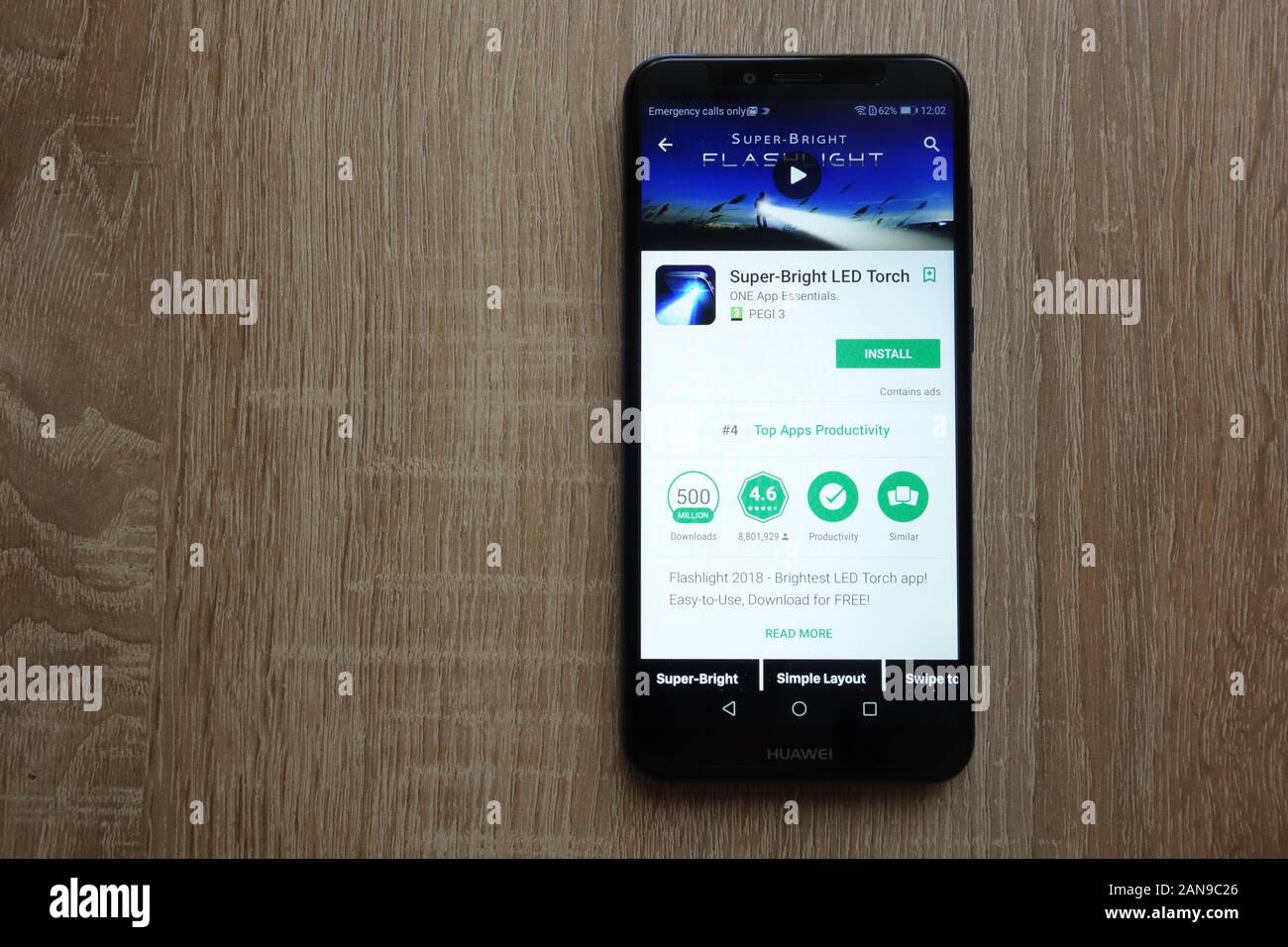 Super Bright LED Torch Flashlight 2018 app on Google Play Store website displayed on Huawei Y6 2018 smartphone Stock Photo Alamy Very well made.