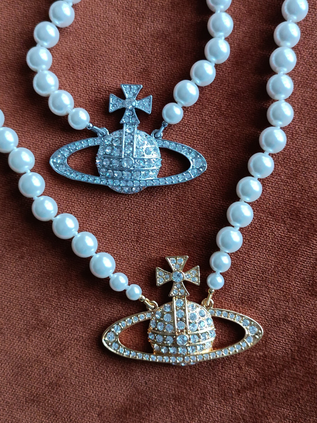 Silver Gold Planet Choker Silver Orb Choker Westwood Orb Necklace Planet Necklace Saturn Orb Pearl Necklace Vivienne Silver Very well made.