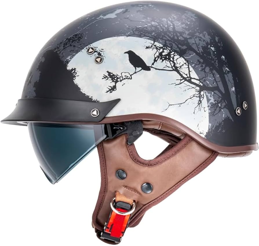 VCOROS Motorcycle Half Face Helmet Sun Visor Quick Release Buckle Dot Approved Helmets for Men Women Dark Night XXL Very well made.