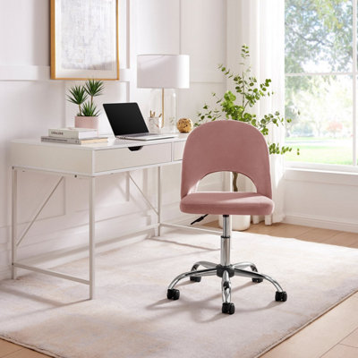 Modern Blush Pink Velvet Swivel Office Chair Black Base Posh Living Very well made.