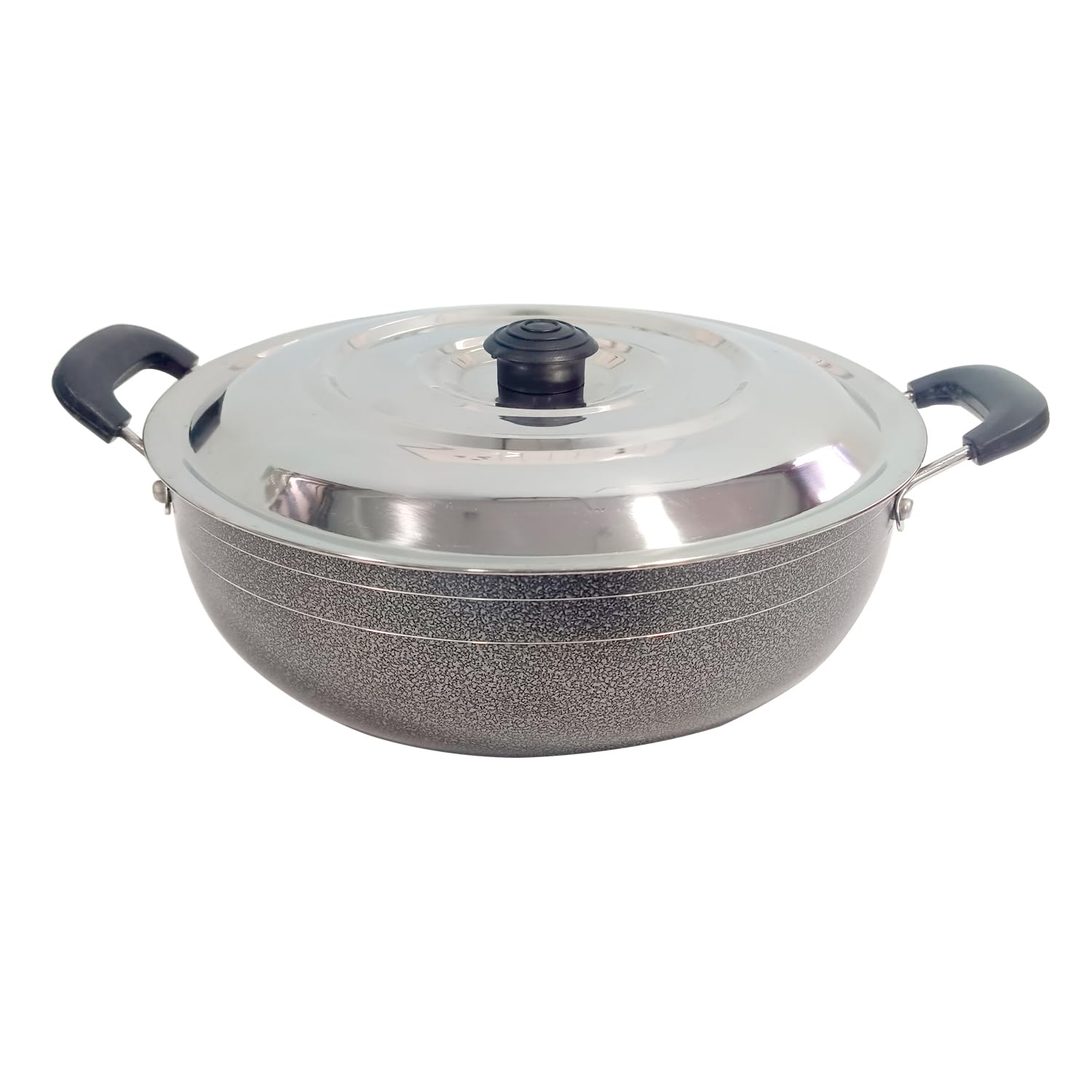 Non Stick Coating Kadai Frying Pan with Steel Lid 2.5 Litre Non Stick Coating All Purpose Pan Aluminium Non Stick Coating Kadai with Lid Frying Pan Very well made.