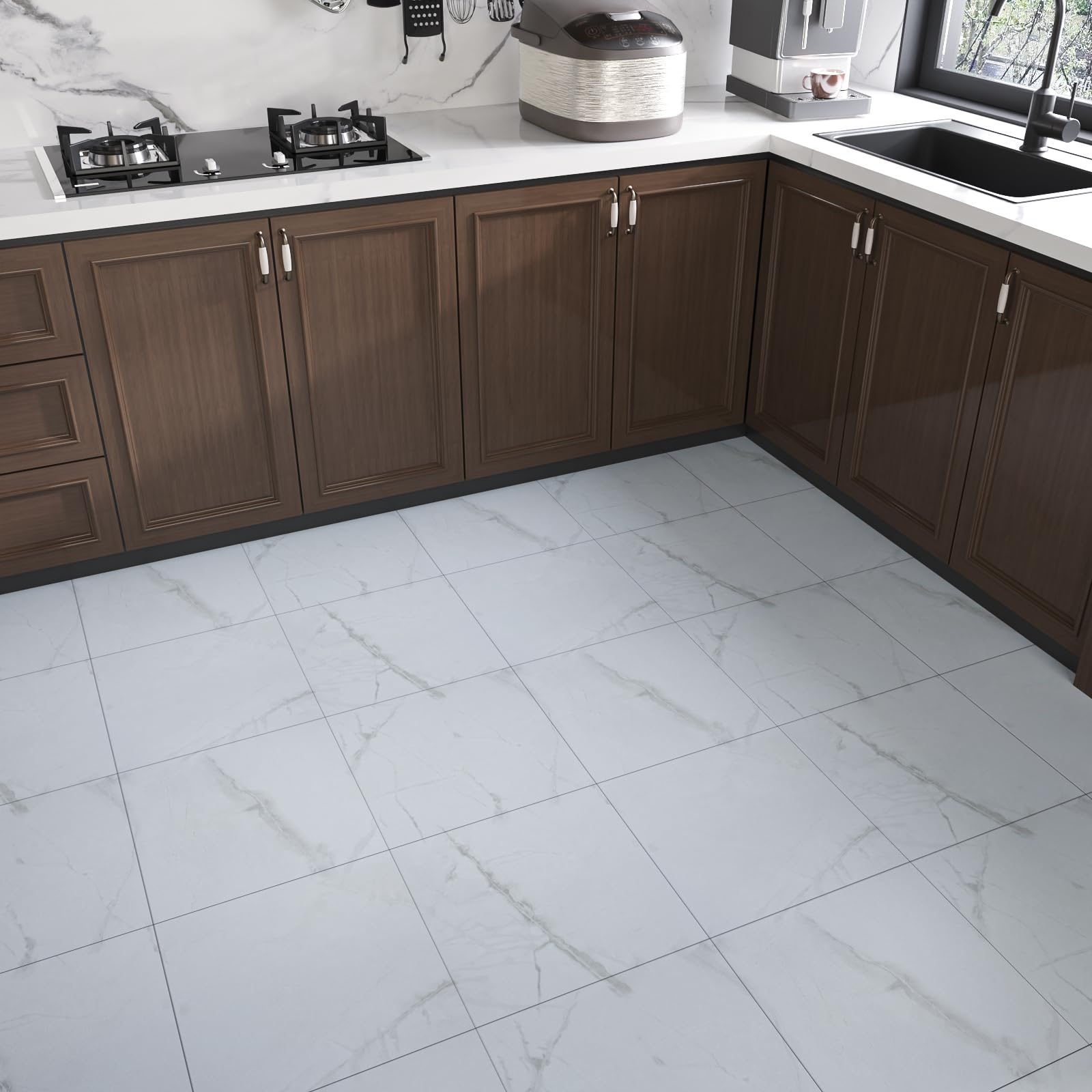 VaryPaper Vinyl Floor Tiles Self Adhesive White Marble Effect Laminate Flooring 30cmx30cm 20 Pieces Peel and Stick Kitchen Floor Tiles Bathroom Vinyl Flooring White Vinyl Floor Sticker for Living Room... Very well made.