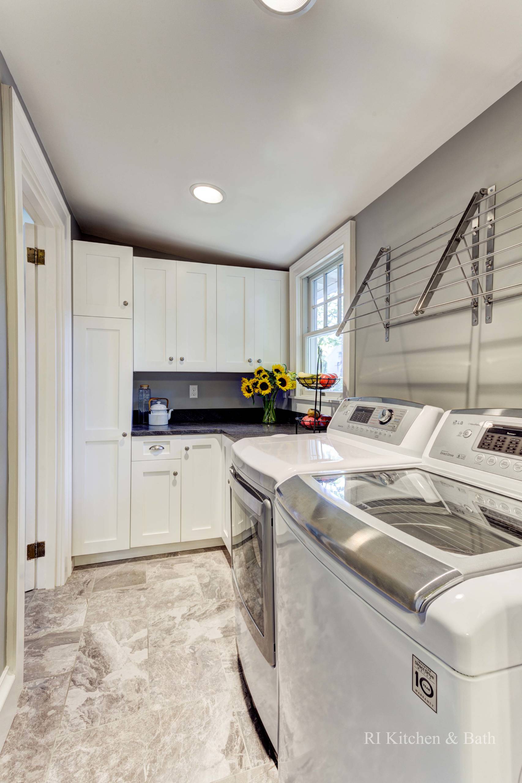 Adding more functional space in the laundry room storage shelf and clothing rod House of Hepworths Very well made.