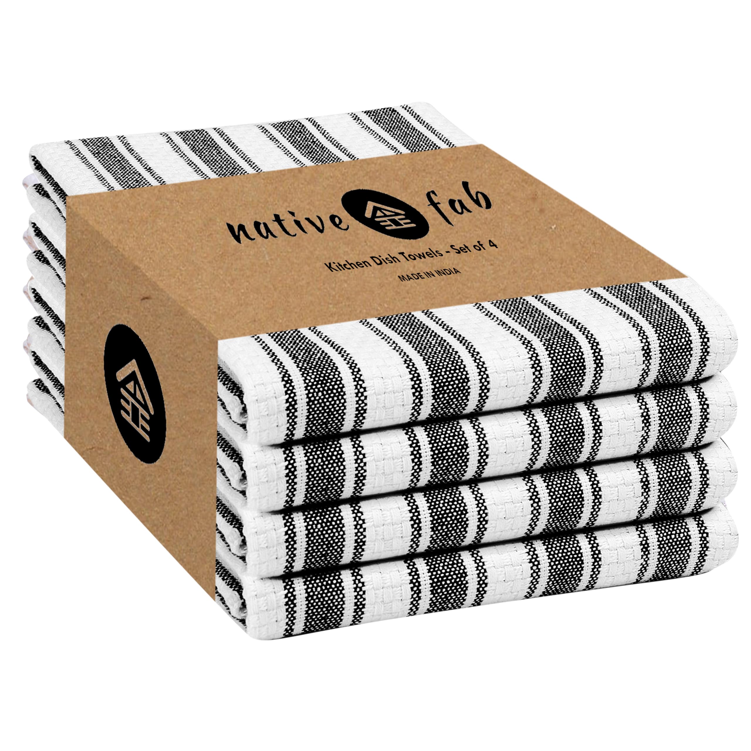Native Fab Stripe Tea Towel with Hanging Loop 38x63 cm Set of 4 100 Cotton Soft Absorbent Washcloths Rags Kitchen Towel for Cleaning Drying Very well made.