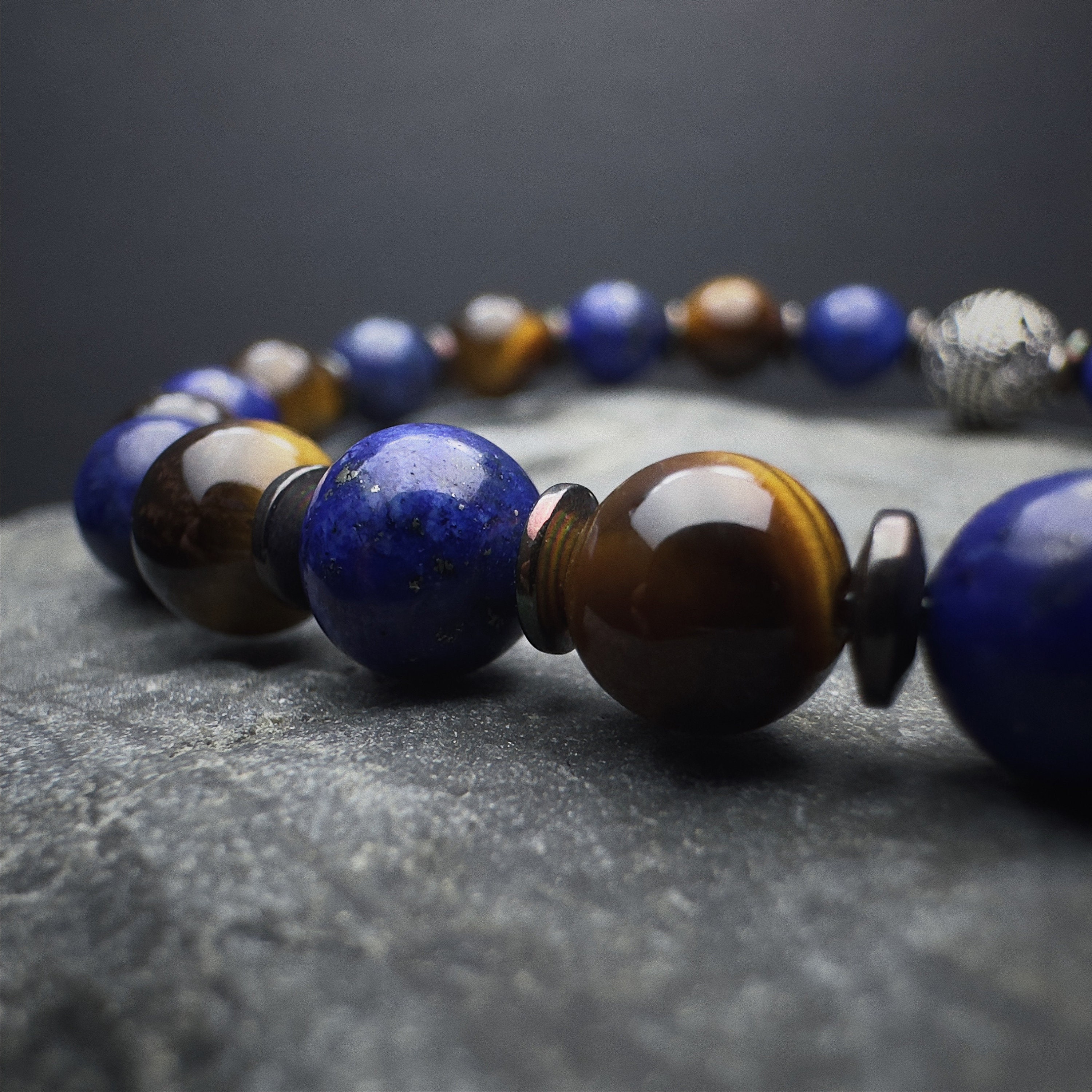 The Transformation Journey Double Bracelet for Men combines Lapis Lazuli Tiger Eye and Onyx for a powerful balance of energy. Lapis Lazuli promotes intuition creativity and self awareness while Tiger ... Very well made.