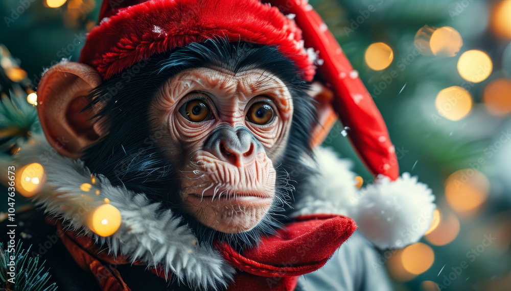 Photo Art Print Realistic Christmas monkey wearing a Santas Hat magical winter decoration cute aiximagination Very well made.